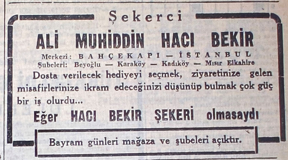 Hacı Bekir Müessesesi, kuşaklar boyunca edinilen ve geliştirilen deneyimlerle şekerleme dünyası ve sanatı üzerine bilgi birikiminin en yüksek noktasına ulaşmıştır.