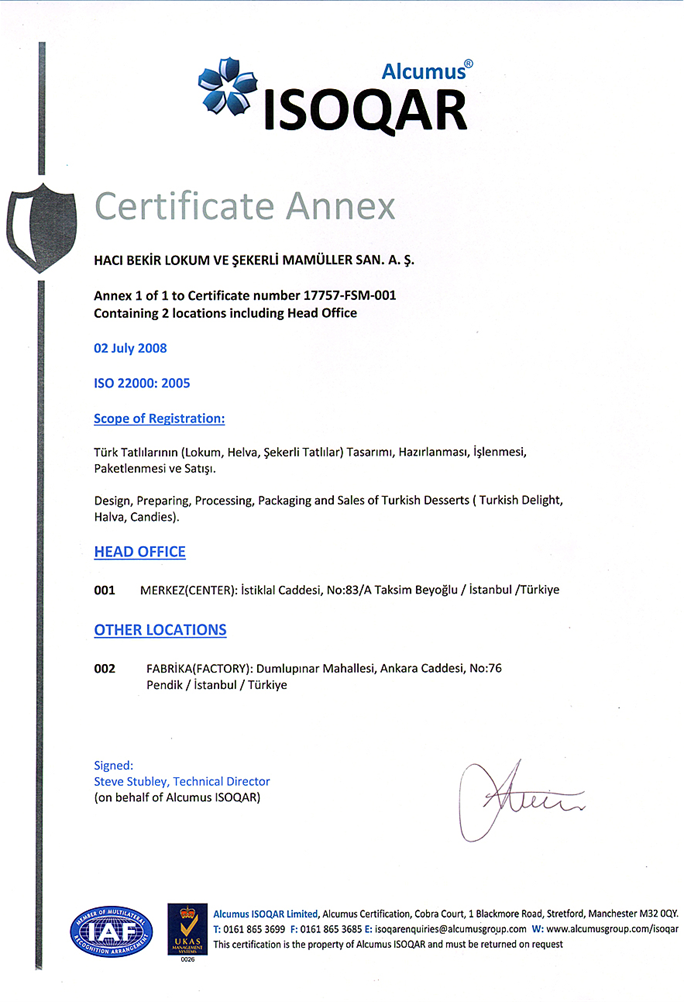 HACI BEKİR Firması, hedeflerini çalışan personelini eğiterek, tüm personelinin bilinçlenmesini sağlayacak ve Kalite, Çevre ve Gıda Güvenliği Politikasını sürekli gözden geçirecektir. HACI BEKİR Firması, bu politika ve hedeflerinin temiz çevre ve doğa içinde tahakkuk edeceğine inanarak bu hususları gerçekleştirmeyi ve geliştirmeyi taahhüt eder.