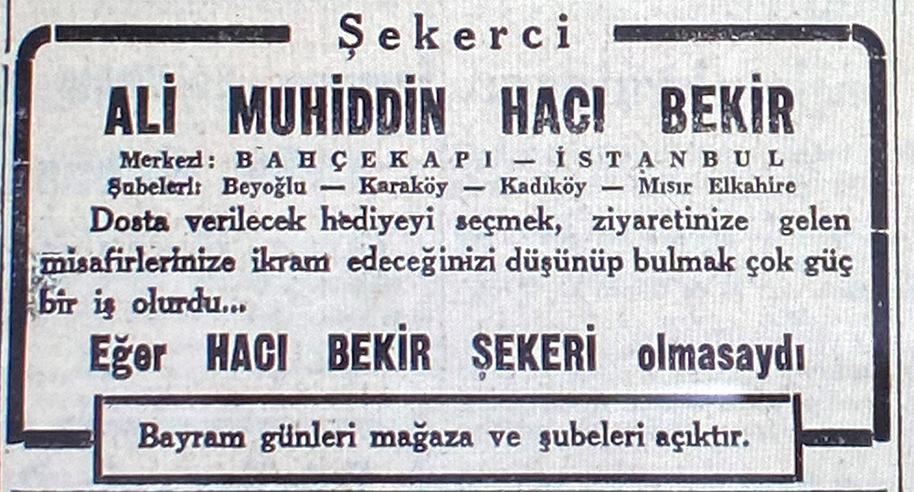 Hacı Bekir Müessesesi, kuşaklar boyunca edinilen ve geliştirilen deneyimlerle şekerleme dünyası ve sanatı üzerine bilgi birikiminin en yüksek noktasına ulaşmıştır.