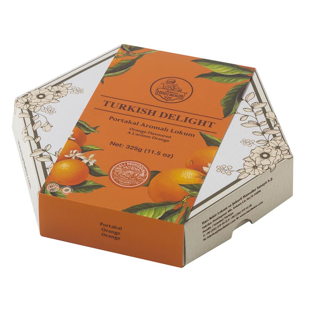 Hacı Bekir Orange Lokum packages offer you the magnificent aroma of natural, fresh oranges, and the unique consistency of Hacı Bekir lokums.