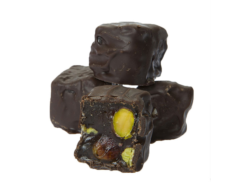 TURKISH DELIGHT WITH EXTRA PISTACHIO & CHOCOLATE COATED, MADLEN CHOCOLATE WITH WALNUT AND ALMONDS