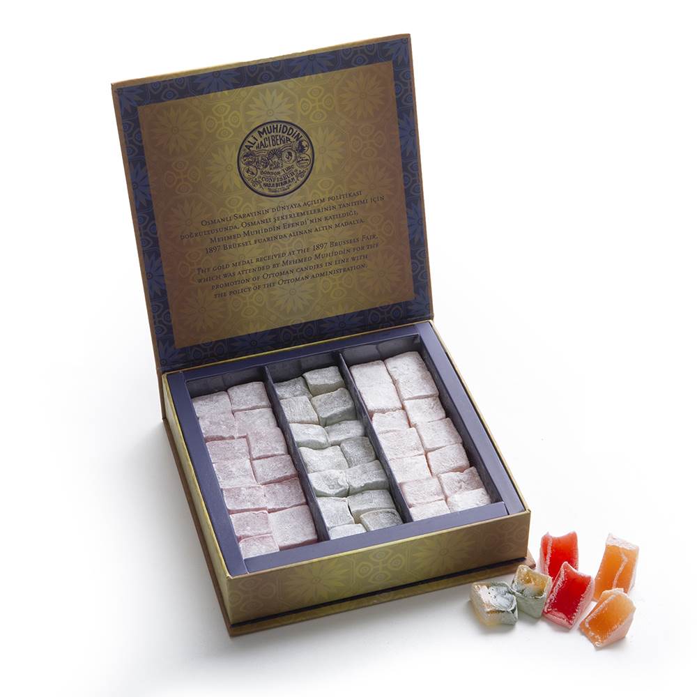 Hacı Bekir Assorted Lokum packages offer you three different flavors in magnificent and unique consistency of Hacı Bekir lokums.