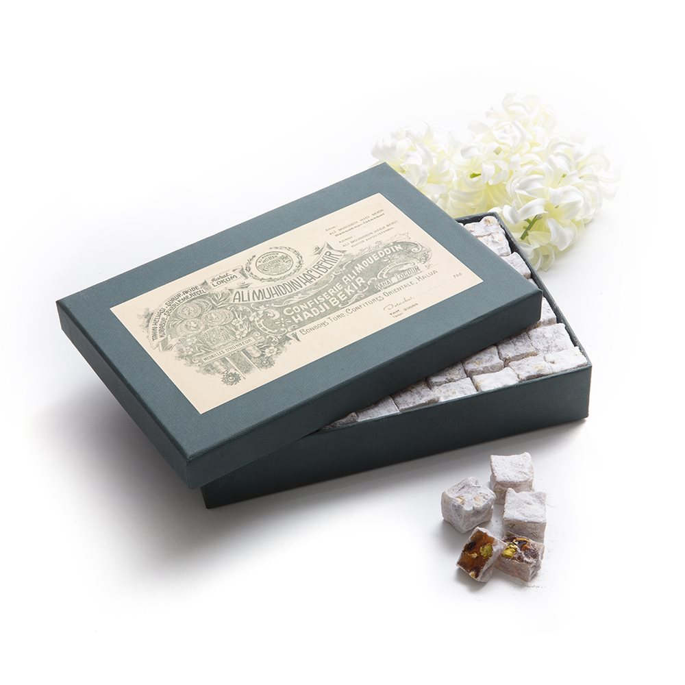 Hacı Bekir Pistachio Lokum packages offer you the magnificent taste of natural, fresh pistachios, and the unique consistency of Hacı Bekir lokums.