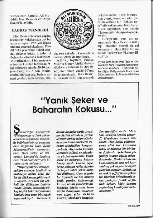 Hacı Bekir Müessesesi, kuşaklar boyunca edinilen ve geliştirilen deneyimlerle şekerleme dünyası ve sanatı üzerine bilgi birikiminin en yüksek noktasına ulaşmıştır.